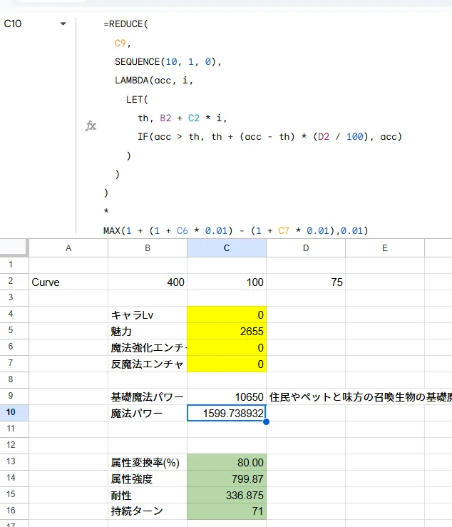 ※ 最終的な魔法パワーはCurveや魔法強化エンチャ、反魔法で補正される
