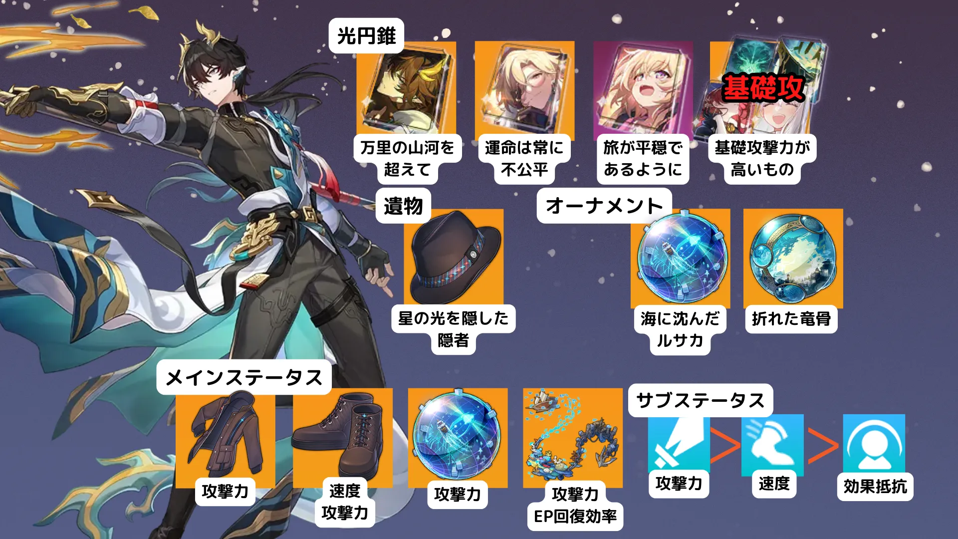 - 基礎攻撃力の高い光円錐:他の運命のものでも良いので、基礎攻撃力の高い光円錐を持たせてください。