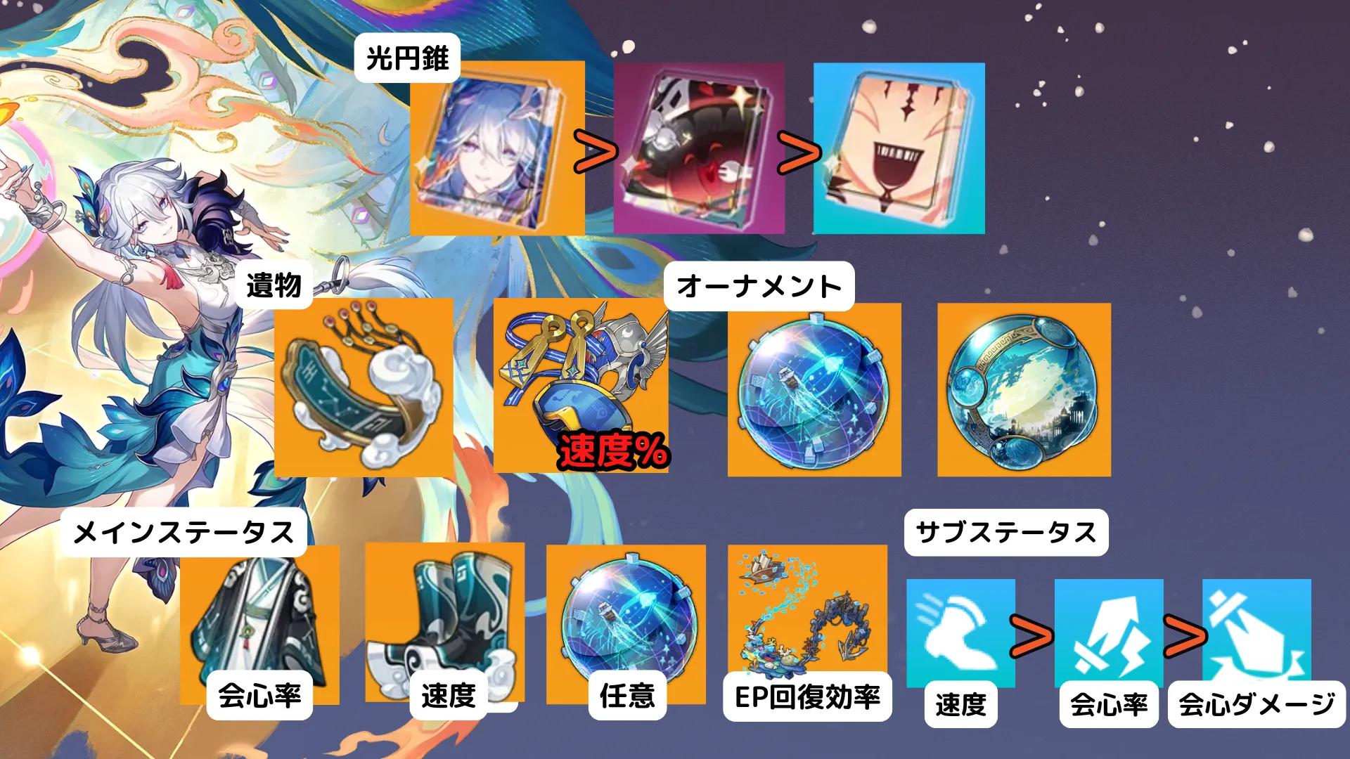![]() 会心率 | ![]() 速度 | ![]() 何でも | ![]() EP回復効率 |